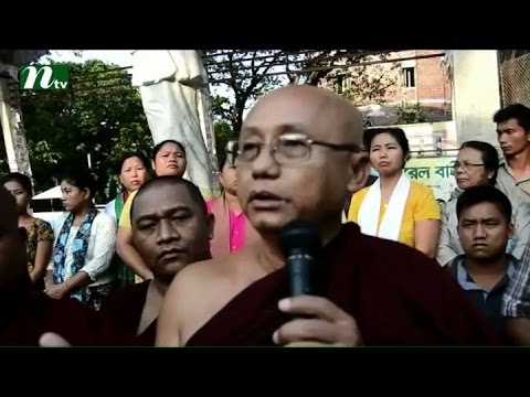এর আগে বান্দরবান রাজগুরু কেন্দ্রীয় বৌদ্ধ বিহারের অধ্যক্ষ মহাথের উচহ্লা ভান্তের নেতৃত্বে বৌদ্ধ ভিক্ষু এবং বৌদ্ধ ধর্মাবলম্বী নারী-পুরুষরা রাজগুরু বিহার থেকে বিক্ষোভ মিছিল বের করে। মিছিলটি শহরের প্রধান প্রধান সড়ক প্রদক্ষিণ করে। পরে প্রেসক্লাবের সামনে ঘণ্টাব্যাপী মানববন্ধন কর্মসূচি পালিত হয়। এতে বক্তব্য দেন অধ্যক্ষ মহাথের উচহ্লা ভান্তে, স্থানীয় নেতা মংমং চাক, ভিক্ষুর আত্মীয় থোয়াইগ্যা চাক প্রমুখ।